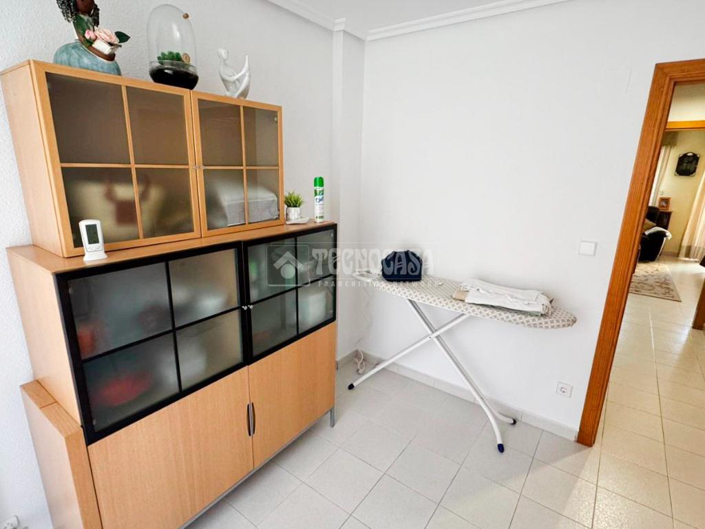 La planta principal dispone de una cómoda distribución con una HABITACIÓN, BAÑO completo, cocina independiente y un amplio SALÓN con salida directa a un PATIO PRIVATIVO, ideal para disfrutar del aire libre, comidas en familia o zona de descanso.